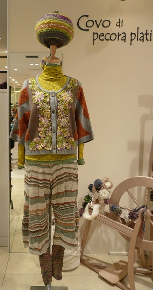 更に春色冬素材。カーディガン ¥39,000(税別) パンツ ¥29,000(税別) レギンス ¥18,000(税別) 帽子 ¥10,000(税別)