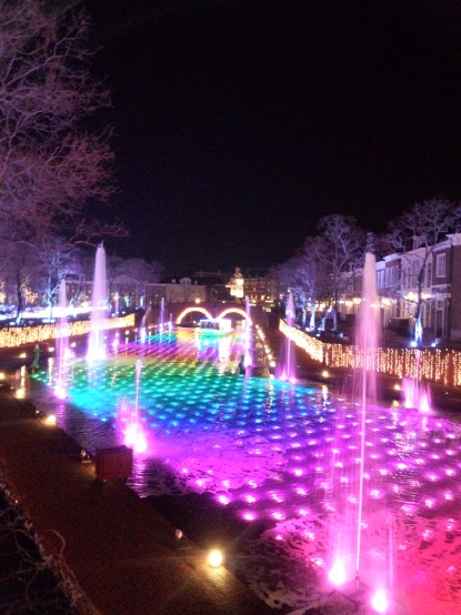 左は、運河がライトアップされていてその中を船に乗って通る事もできます。