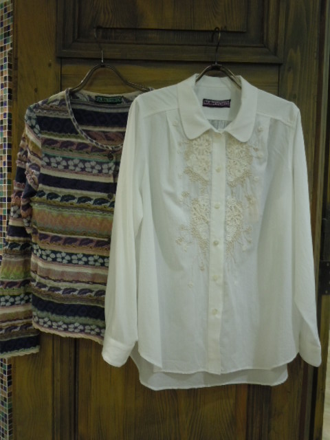 アンティークのブラウスをおもわせる 刺繍が清楚な綿ブラウスが
