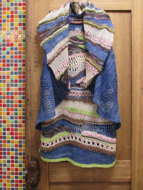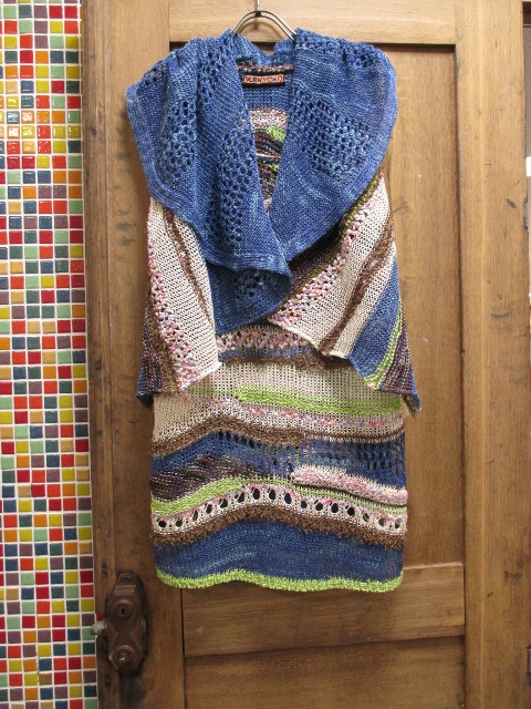 おそろいのチュニックも色使いが大胆で表情豊かなヤーンを使用しているので
