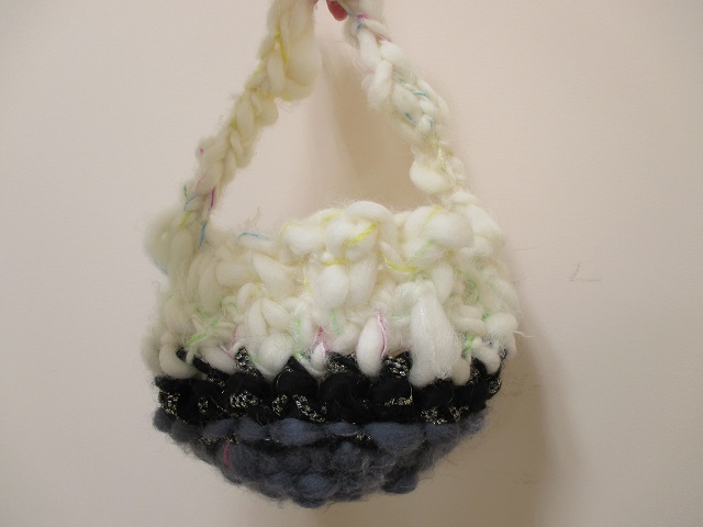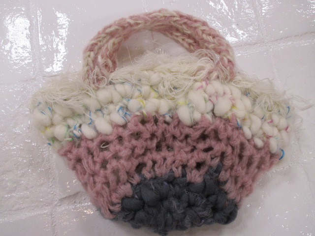 もこふわの糸でざっくり感が可愛いミニバッグです。