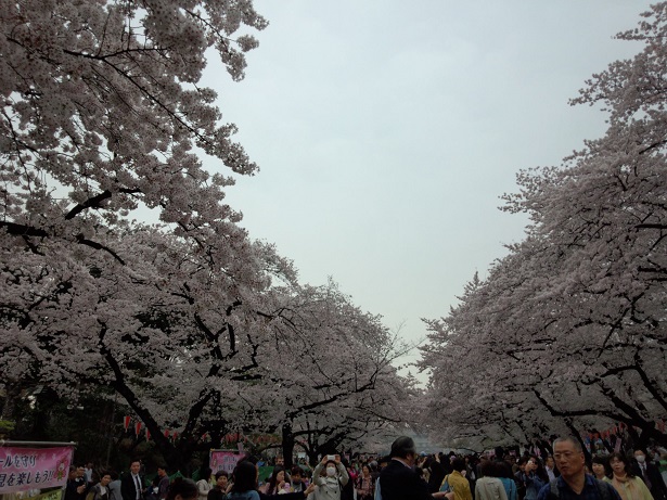 先日上野公園に行ってきました。満開でとても賑やかでした。あいにく天気が曇りですが、桜はきれいでしたよ。