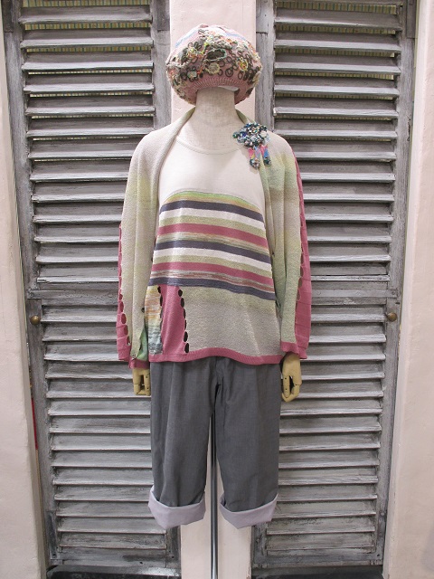 同じくペーパーヤーンを使用しているボタン付きカーディガンもございます♪