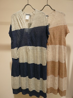 ツートンカラーの編地が楽しいワンピース