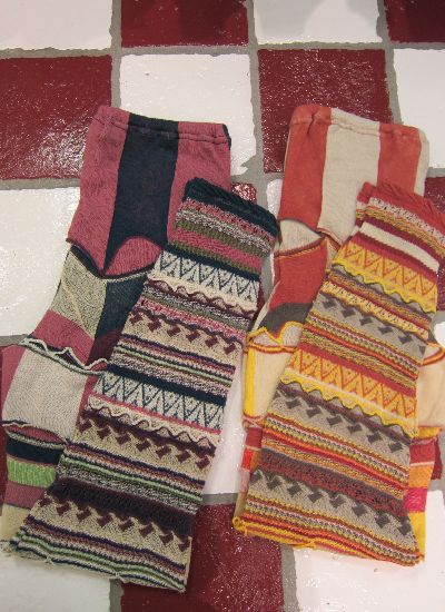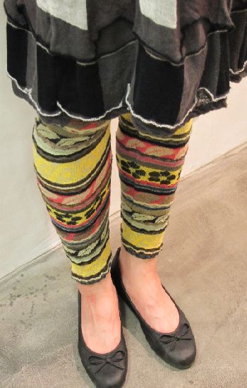 右画像、 こちらはキュプラ79%、ポリエステル21%の多色ボーダーレギンス。何とも言えない発色の良い鮮やかなカラーのボーダー。和のような、洋のような・・・