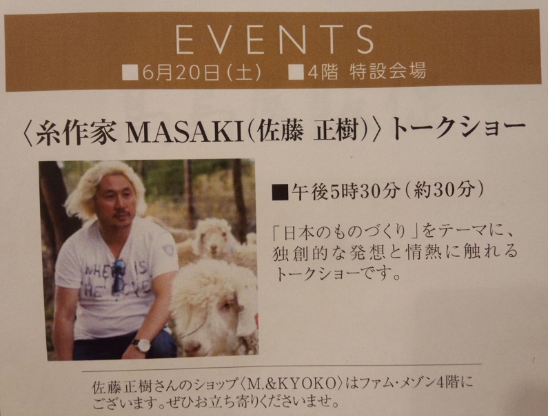 今月は、糸作家MASAKIが新宿髙島屋店でトークショーを開催致します。
