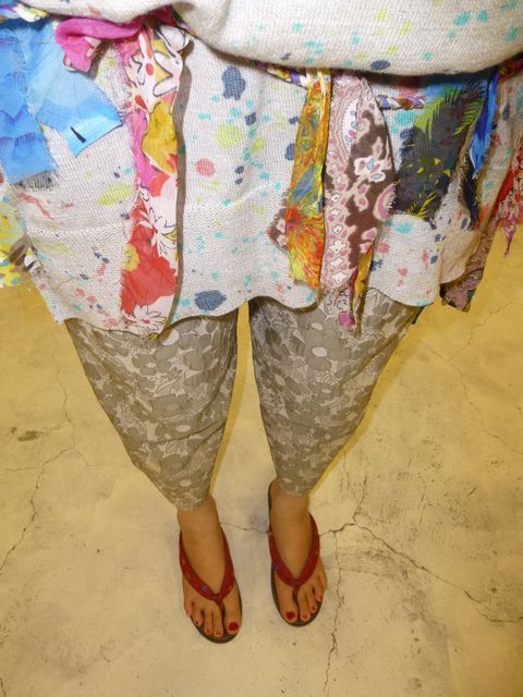 次はまたまた可愛いい赤の鼻緒のサンダルとM,&KYOKOのお花レース柄PTとのコーデイで
