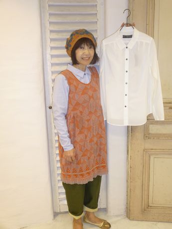 コーディネートしているブラウスは、シンプルで色々な物と組み合わせて重宝して頂けますよ。