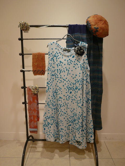 チュニックワンピース ¥32,400(税込) 帽子 ¥15,120(税込) ストール ¥16,200(税込) アームウォーマー ¥8,640(税込) レギンス ¥10,800(税込) コサージュ ¥7,560(税込)