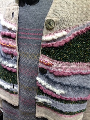 リズミカルなヤーンが印象的なカーディガン。