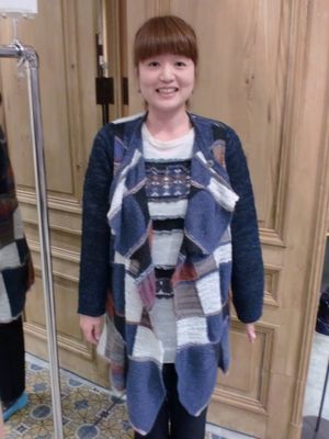 カーディガンと合わせるとぽっちゃり担当(笑)永田も、縦のラインが効いて