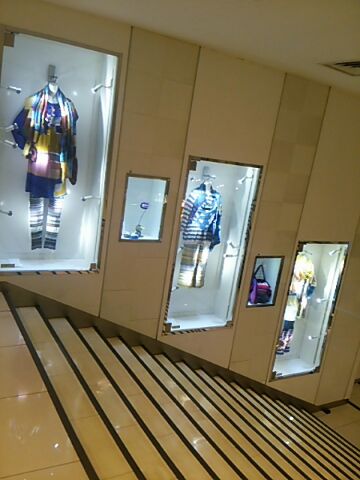 小田急新宿店本館 二階と三階をつなぐ階段の壁一面に、この秋の人気のM.&KYOKOスタイルがズラリッ!