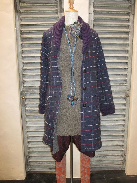 ウール生地にモール糸を格子状に織り込んだチェック柄☆