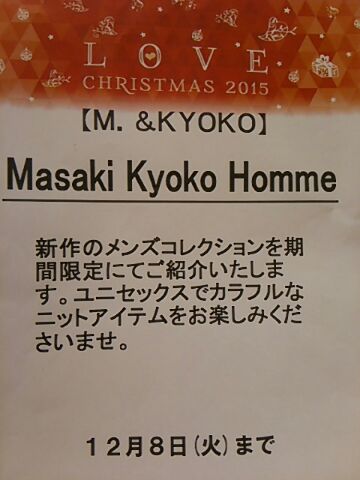 小田急店では恒例となります、Masaki Kyoko Homme コレクションを