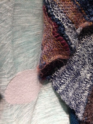 左の円形ベストの下に着ているプルオーバーは