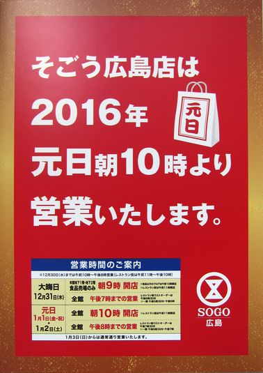 そごう広島店は、2016年 元旦 朝 10時より営業しております。