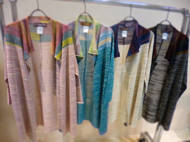 絣調のグラデーションがとっても綺麗なチュニックとカーディガン。