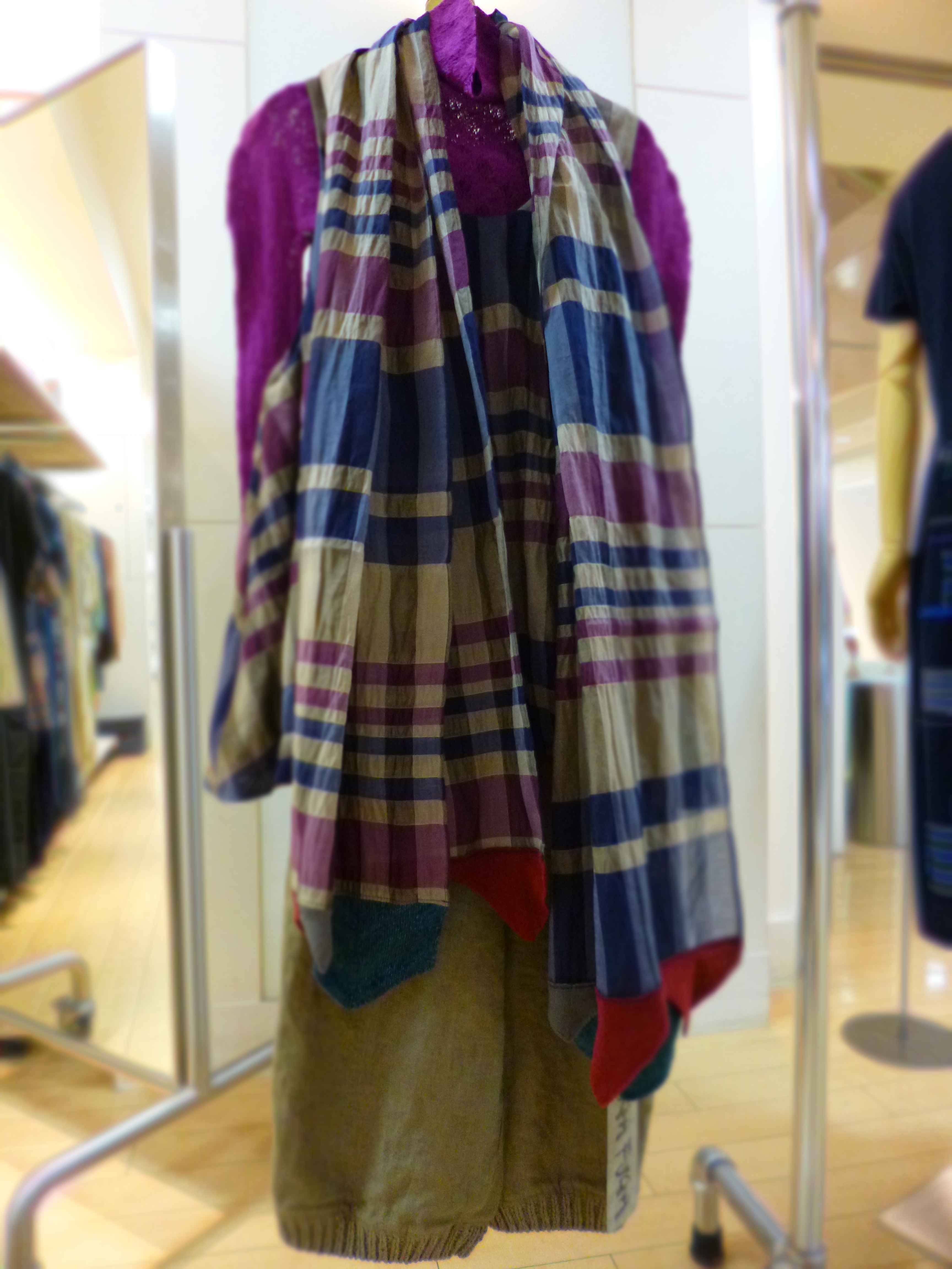 チェック柄のベストはなんとリバーシブル。お揃いのショールもありますよ!
