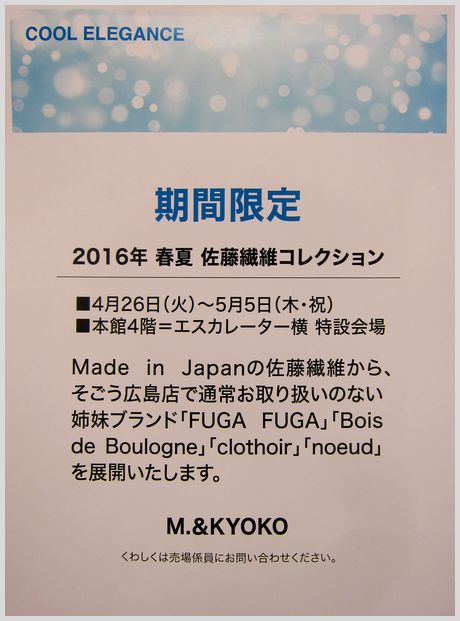 『 2016☆春夏 佐藤繊維 COLLECTION 』