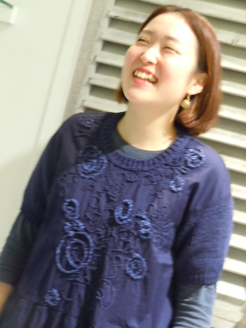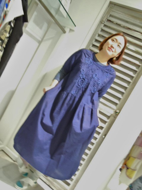 ゆったりロングで布帛×ニットと刺繍を楽しんでいただけます♪