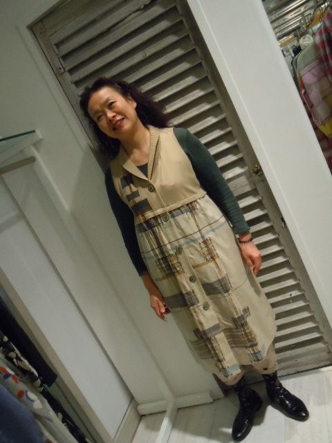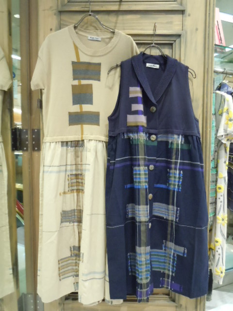 左:先染めチェック切り替えワンピース¥45.000+税 右:同素材前空き¥39,000+税