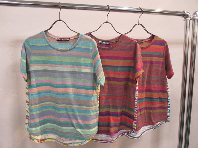 前は爽やかなボーダー柄、そして後ろ姿はカラフルな迷彩柄です。 カットソー ¥20,000+税