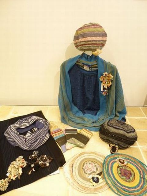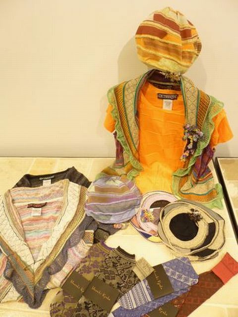 小物では、ラッセルレースのリバーシブルソックス、M,&KYOKOらしいカラフルな靴下は