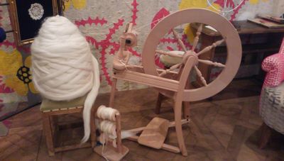 さりげなく置いてある糸つむぎ機がおしゃれでございます。