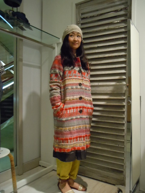 右コートは、カーデイガン感覚で羽織れるコート
