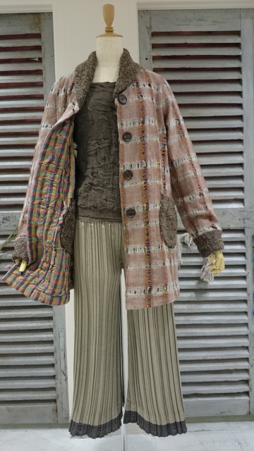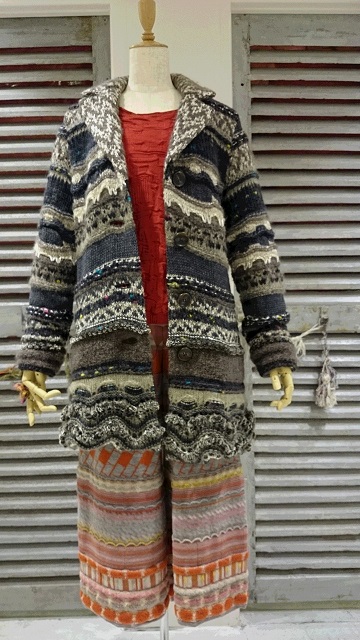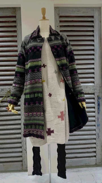 ファンシーヤーンを使った、魅力的なテキスタイルコート