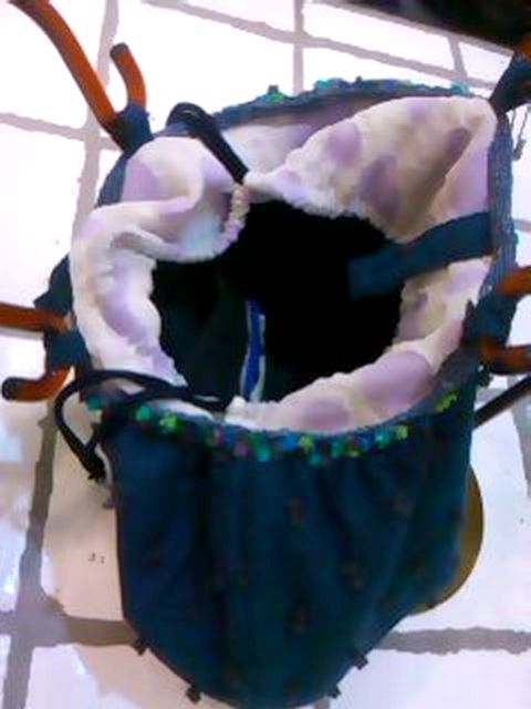 巾着仕上げに、ボタンもついてます。