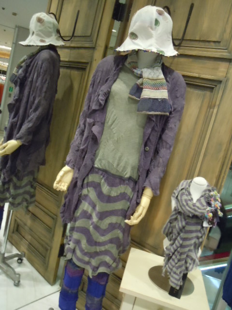 ↑↑麻・コットンのニットカーディガンとワンピースは、時にはアンサンブルにして、すっきりシックにまとめて