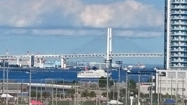 横浜らしい青い青い港の風景を
