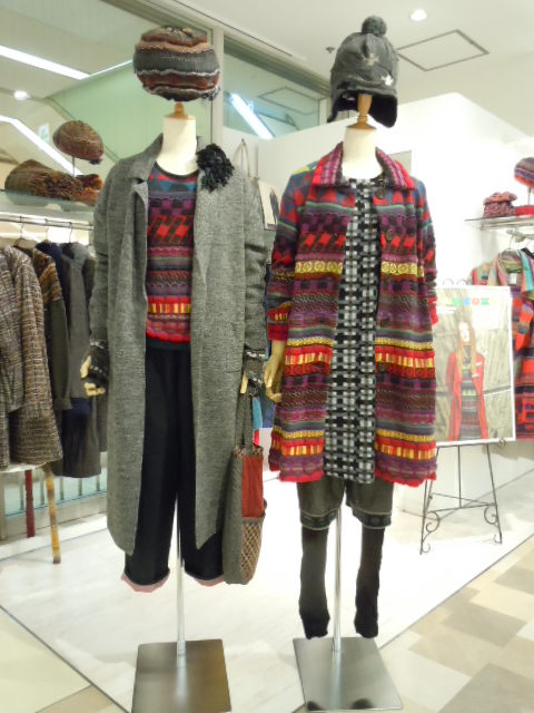 ジャガード柄はもちろん 新作のピンクのコートは袖を通してくださったら