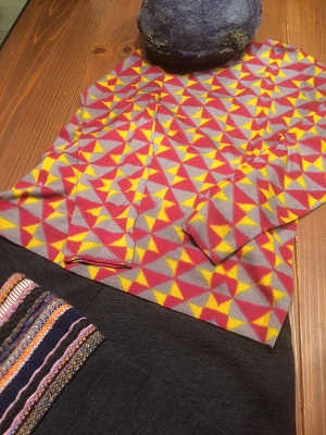 絞り染め 動きのある柄で、体型カバーにも最適です。