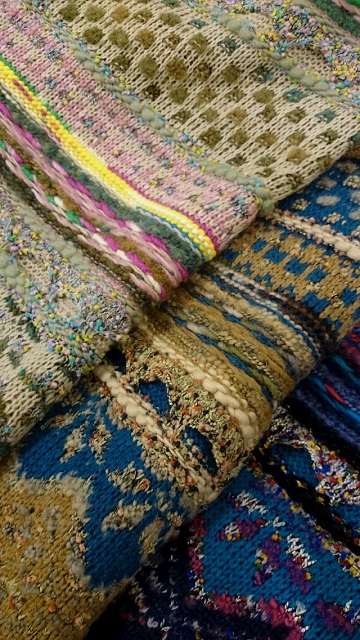 極太のグラデーションヤーンや、カラフルなモール糸等、様々なヤーンを