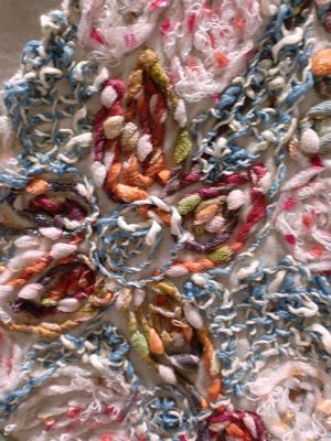 スカートの裾はニットのフリルが裏地と一緒についています。