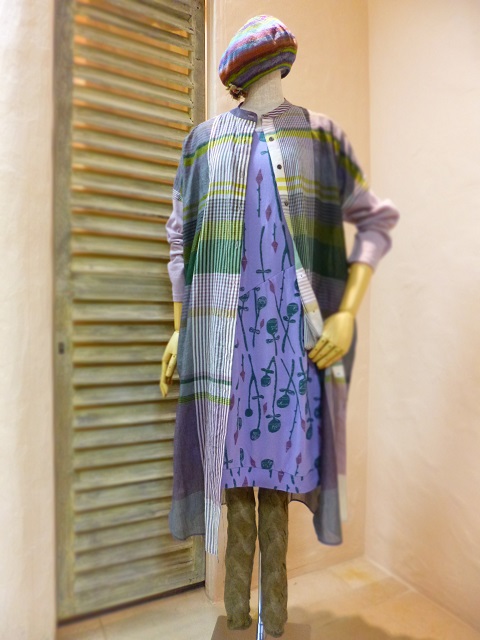 微かに透けるチェックのシャツワンピースを羽織って軽やかに。