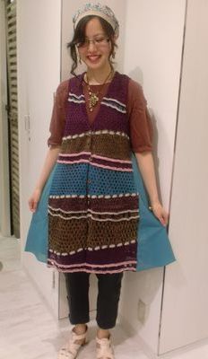 M.&KYOKOらしい太めの糸が可愛いロングベストです。