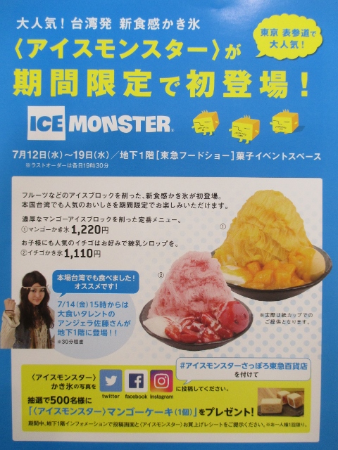 7/12(水)~19(水)期間限定で人気のかき氷『アイスモンスター』が出店。