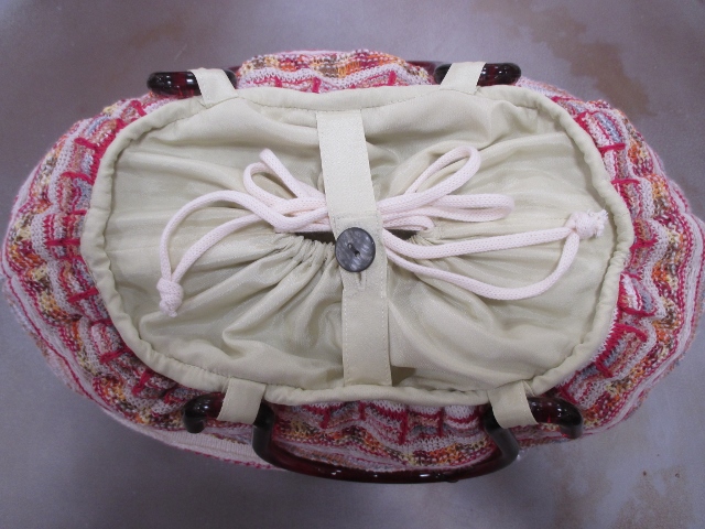 コロンとした丸みを帯びたシルエットが可愛いニットバックです。