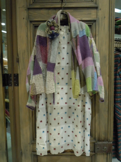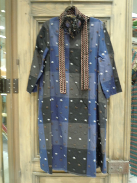 中央: 木綿の大きなチェックの上に ウールの水玉がのった