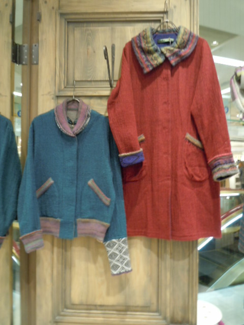 左:人気のMIXジャガードニットコート。カラフルで綺麗!¥73,000+税