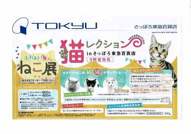 9階催事場にてふれあい ねこ展という、ほっこりした催事を開催中です。