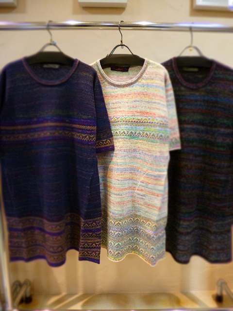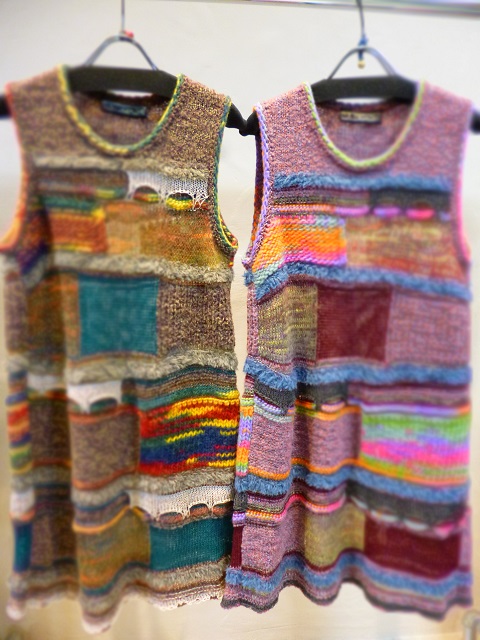 左は、モールヤーンやラメ糸など多種類の糸がMIXされたM.&KYOKOらしいテキスタイルがたまらない楽しいチュニック❤