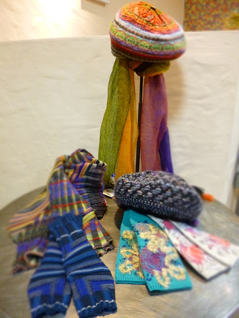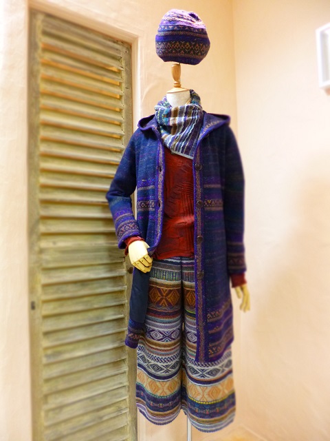 ストールや帽子、アームカバーなど、色取りを添える小物たちも揃っております。