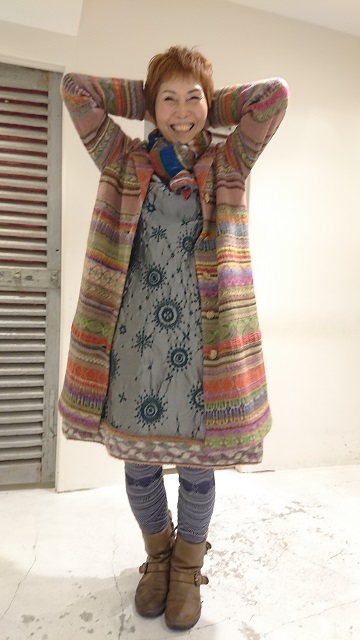 定番のジャガードニットコート...テーラード衿が新鮮♪