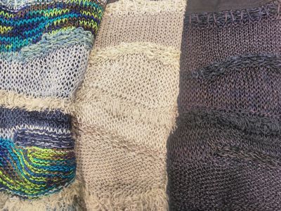 和紙レーヨン&シルク&発色のよいグラデーションテープヤーンを編み込んだ