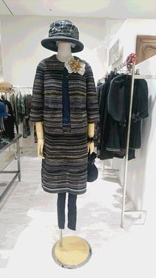 ニットスーツのセットアップできちんと感に遊び心を添えて🌼