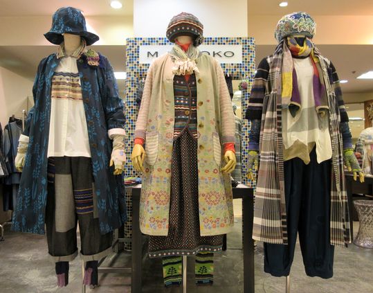 パッチワーク風のニットジャガドー使いがポイントです。トップスを変えてタウンから